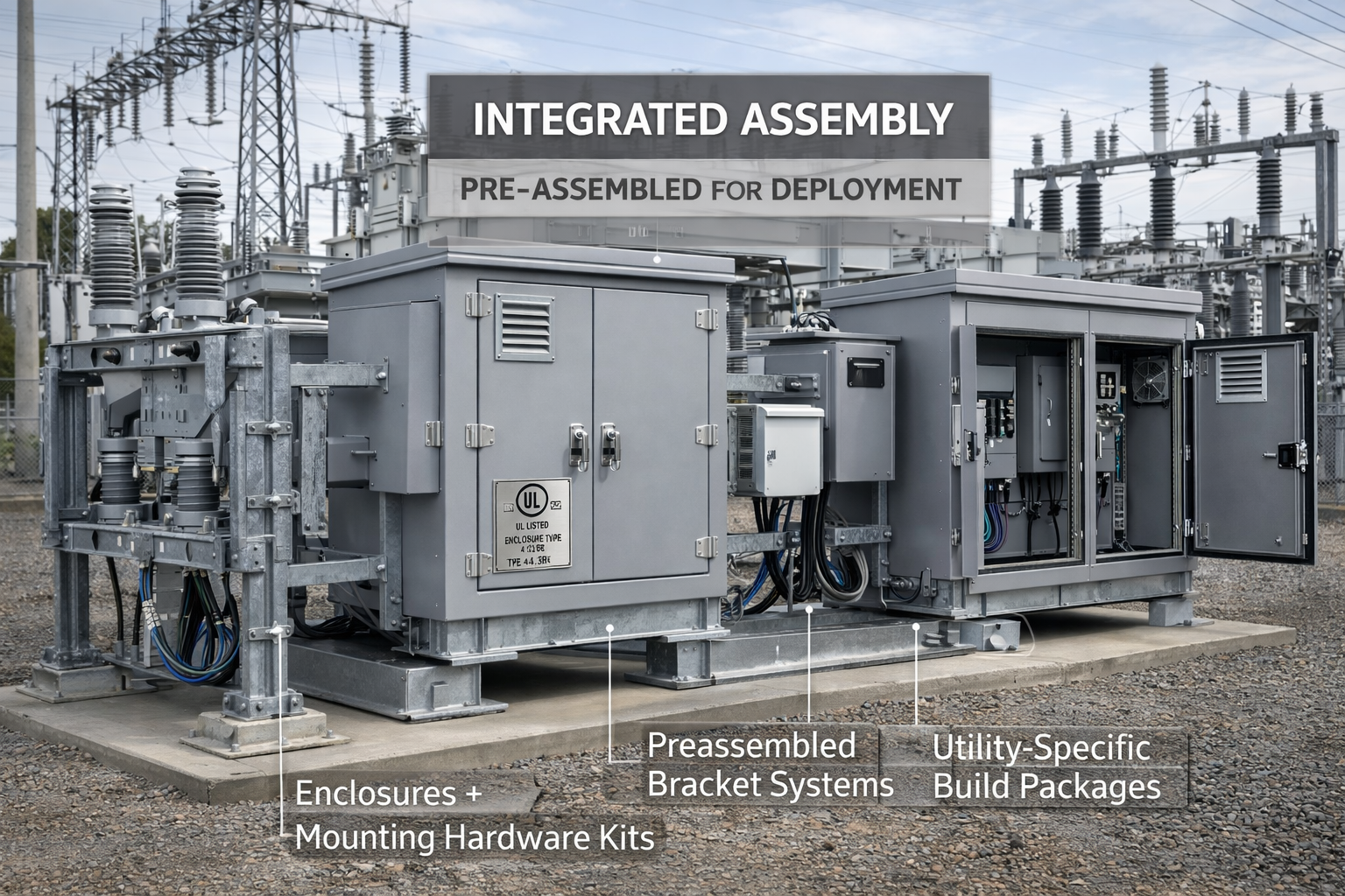 Purpose-built for utility and substation projects where installation timelines, labor costs, and field coordination drive project efficiency. We eliminate the procurement fragmentation of sourcing enclosures, brackets, hardware, and accessories from multiple vendors.